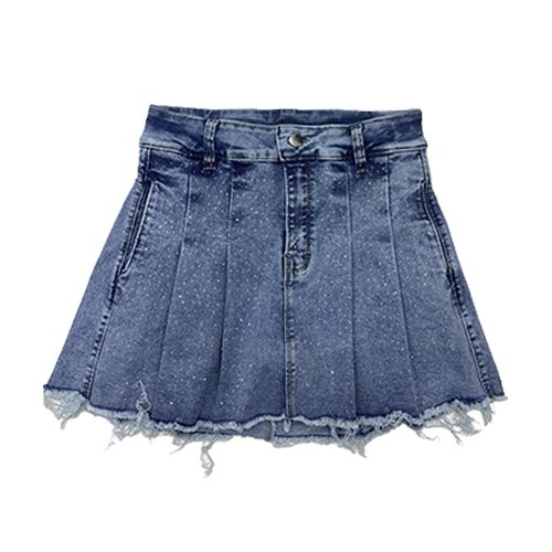Descubre la Falda Short Jean con detalles de brillo en la parte delantera, ideal para quienes buscan un look moderno y lleno de estilo. Su diseño único en corte A con tablones realza tu silueta, mientras que su tela rígida ofrece durabilidad y un ajuste ideal.